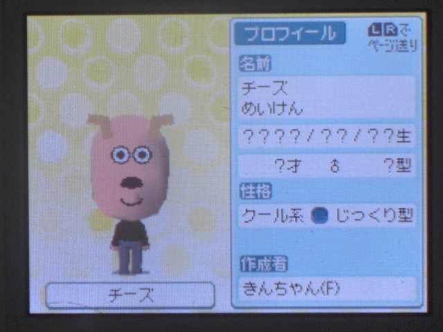 【アンパンマン 名犬チーズ】をトモダチコレクションのMiiで作ろう