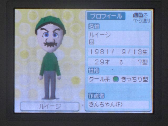 【スーパーマリオブラザーズ ルイージ】をトモダチコレクションのMiiで作ろう
