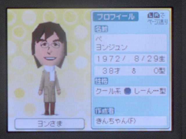 【ペ・ヨンジュン】をトモダチコレクションのMiiで作ろう